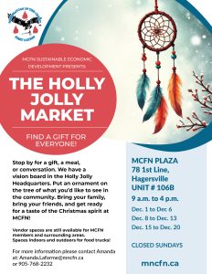 ✨ Holly Jolly Market!🎄 Join us at the MCFN Plaza (78 1st Line, Unit 106B, Hagersville) for festive fun, tasty food, unique gifts, and holiday