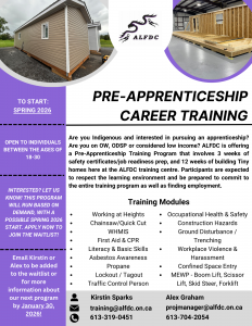 Email Kirstin or Alex to be added to the waitlist or for more information before January 30th! Kirstin Sparks training@alfdc.on.ca 613-319-0451 Alex Graham projmanager@alfdc.on.ca 613-704-2054