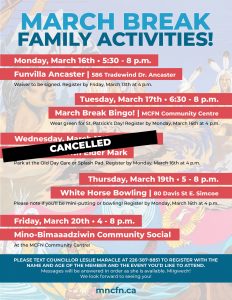 Please be advised that tonight’s Sugar Bush event has been cancelled due to the sap not running yet, as everything is still frozen. Miigwech for