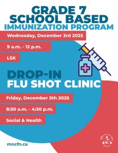 📍 Grade 7 School-Based Immunization Program Wednesday, December 3rd, 2025 • 9 a.m. – 12 p.m. at LSK 📍 Drop-In Flu Clinic Friday, December 5th, 2025