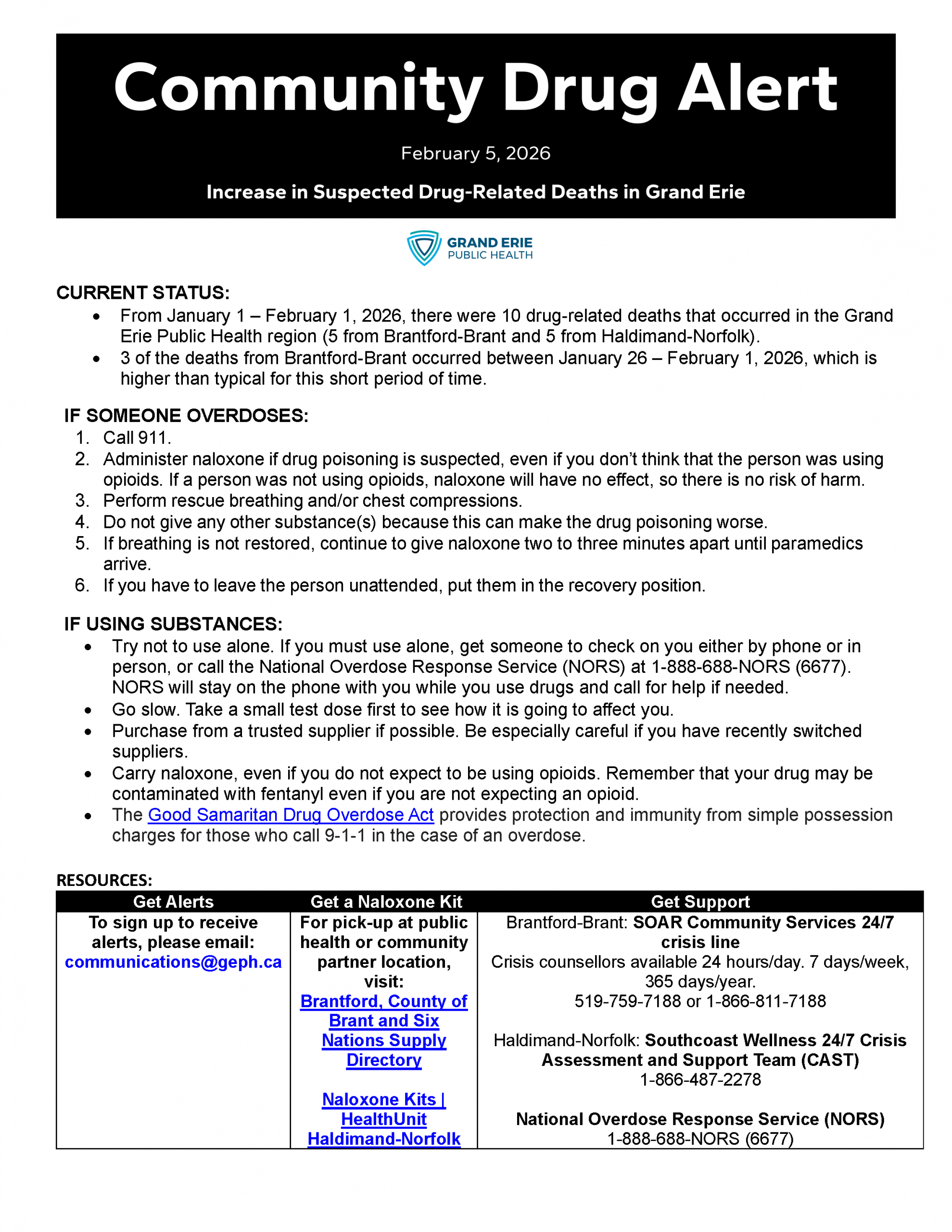 Grand Erie Public Health Issues Community Drug Alert