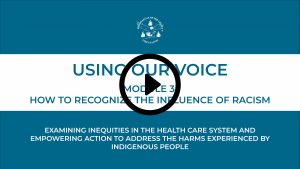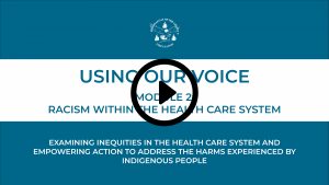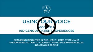 The module closes with consideration of why Indigenous people need to be speaking up about their patient experience. How funding agreements and present day policies are directing systems like Ontario Health Teams and institutions like hospitals to take action to “Advance Indigenous health strategies and outcomes”. Breaking this down, this important work involves increasing ‘cultural awareness’ (deepening understanding of who we are as Indigenous people) and ‘cultural safety’ (addressing the racism within the system and practices, including service delivery).