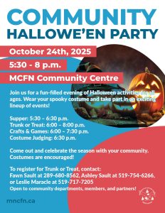 📅 Friday, October 24, 2025 | 🕠 5:30–8 p.m. 📍 MCFN Community Centre 🧙♀️ Come in costume and enjoy food, fun, and fright all in one