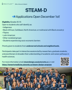 STEAM-D introduces students to science, technology, engineering, arts, and math in health-related contexts, emphasizing diversity and innovation. Eligibility: Priority for students who are Black, Indigenous, Latin American, Filipino